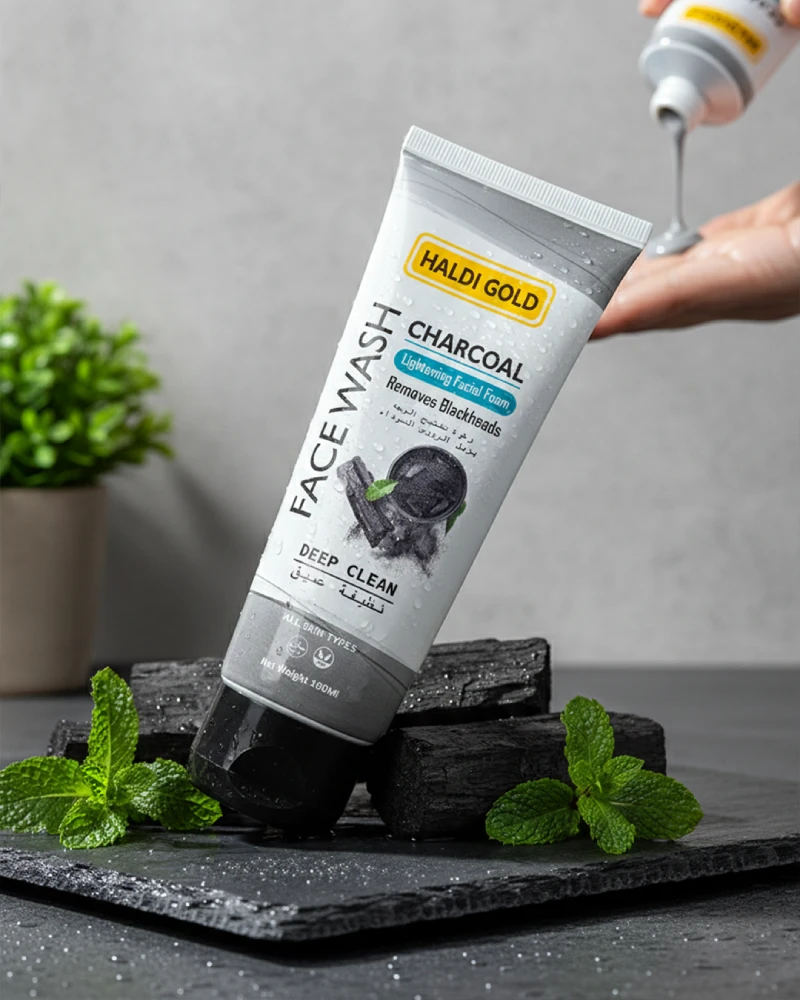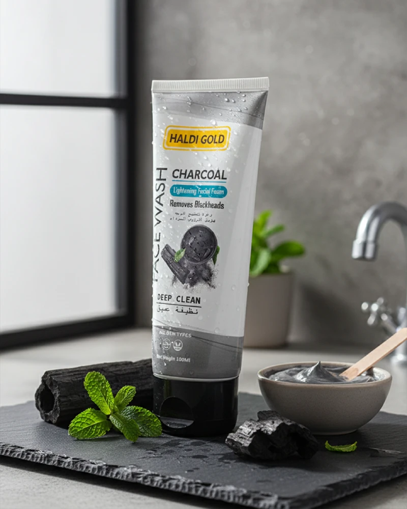 Haldi Gold Charcoal Face Wash deeply cleanses skin, removes blackheads, and controls excess oil. It leaves skin fresh, clean, and refreshed after every wash.