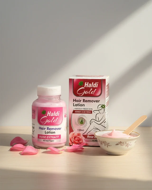 Haldi Gold Hair Remover Lotion with Lemon Extract is a gentle and effective solution for removing unwanted hair while keeping skin smooth and refreshed. Enriched with lemon extract and skin-nourishing ingredients, it helps remove hair easily without causing irritation or dryness.