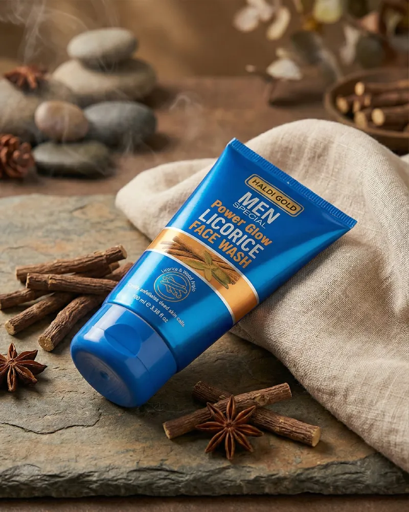 Haldi Gold Men Special Power Glow Licorice Face Wash is specially designed for men’s tough skin needs. Enriched with the power of licorice extract and natural wood apple, this face wash deeply cleanses the skin, removes dead skin cells, and helps restore a healthy, energized glow.