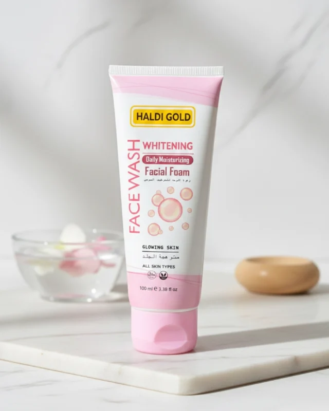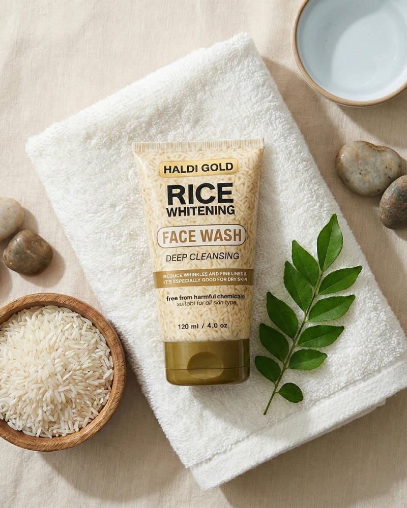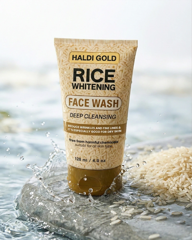 Haldi Gold Rice Whitening Face Wash deeply cleanses skin, helps brighten complexion, and reduces fine lines. Its gentle formula is suitable for dry and all skin types, leaving skin soft and refreshed.