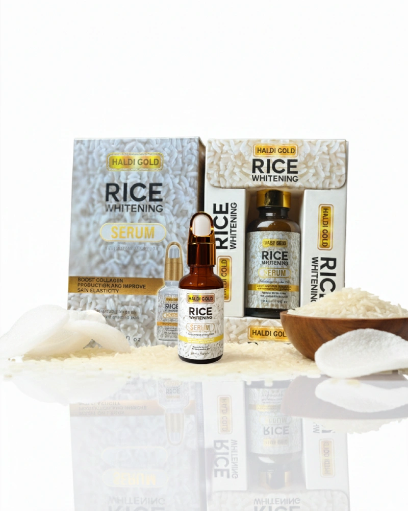 Haldi Gold Rice Whitening Serum is a nourishing skincare formula designed to brighten skin tone, improve texture, and enhance natural radiance. Enriched with rice extract, this serum helps reduce dullness, promote an even complexion, and support healthy-looking skin.